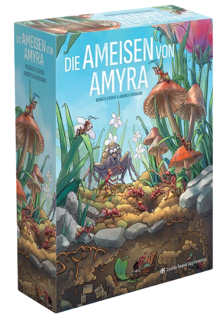 Die Ameisen von Amyra ist ein strategisches und interaktives Spiel, bei dem ihr wichtige Gebiete auf dem Spielplan kontrolliert, euer eigenes Tableau ausbaut und mit über 150 einzigartigen Karten immer neue Karten-Kombinationen erforscht.