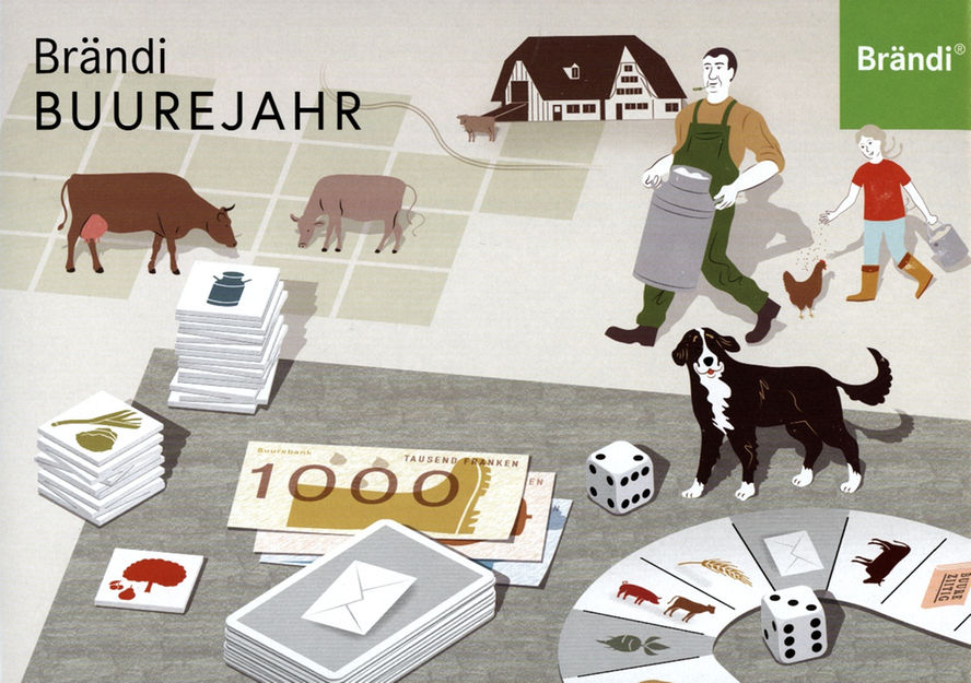 Lieferumfang 1 Spielplan 4 Dorfläden (für 2, 3, 4 oder 5 Spieler) 5 Bauernhöfe mit 15 ha Feldern 1 Spielstein "Sonne" 2 Würfel 20 Obstbaum-Plättchen Je 20 Gemüse-Plättchen (Wintergemüse, Salat, Kartoffeln, Rüebli, Zuckerrüben) Je 30 Obst- und Getreideplättchen Je 20 Vieh-Plättchen (Milchkühe, Mastkälber und Schweine) 40 Milchkannen-Plättchen 30 Kompostwürfel klein 10 Kompostwürfel gross 50 Holzwaren (Holzstäbchen) 15 Karten "Buureziitig" 15 Karten "Persönliche Nachricht" 5 Karten "Versicherung" 1 Bundle Geldscheine 1 Spielanleitung