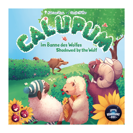 - Wölfe… achtet auf die Wölfe! Deshalb heißt das Spiel auch Calupum. Cave lupum ist Latein für „Vorsicht vor dem Wolf“. Wenn der Wolf Sichtkontakt hat, verliert euer Schaf einen Lebenspunkt.