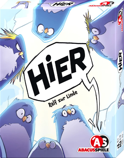 „HIER!“ – „HIER!“ – „HIER!“ hört man es u¨berall in der grossen Pinguinkolonie schreien. In diesem Reaktionsspiel versucht ihr, so schnell wie möglich fu¨r die Pinguine die richtigen Partner zu finden. Richtige Partner sind immer die Pinguine,deren Zahlen den geringsten Abstand zueinander haben. Wer schafft es zuerst, 5 Pinguine unter die Haube zu bekommen?