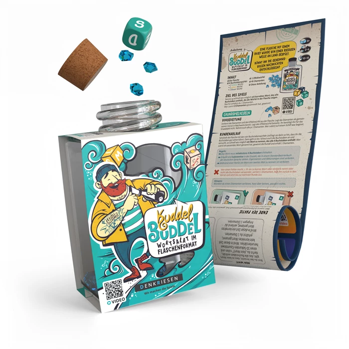 Für jede richtige Antwort gibt’s Diamanten – der Effektwürfel bringt zusätzliche Überraschungen! Ideal für 2–6 Spieler ab 8 Jahren, mit einer Spielzeit von 10–15 Minuten. Fördert Wortschatz, Kreativität und Reaktion – perfekt für Familie, Schule oder unterwegs!