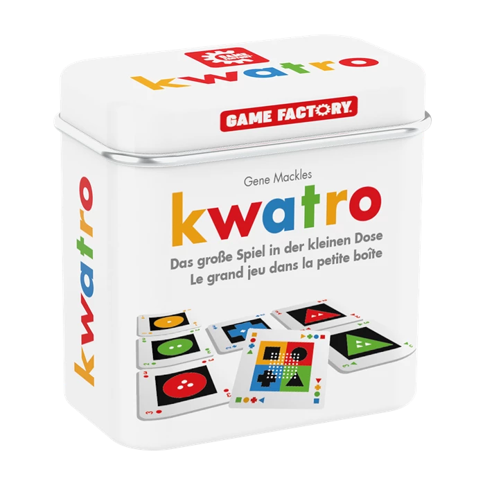 Was einfach klingt, wird zunehmend kniffliger und packender. Denn es gilt: Je mehr Reihen gelegt sind, desto mehr Möglichkeiten bieten sich zum Punkten. Nur wer diese Möglichkeiten erkennt, wird der Sieger sein. kwatro – 4 × gleich oder verschieden, aber einmalig klein für den grossen Spielspass.