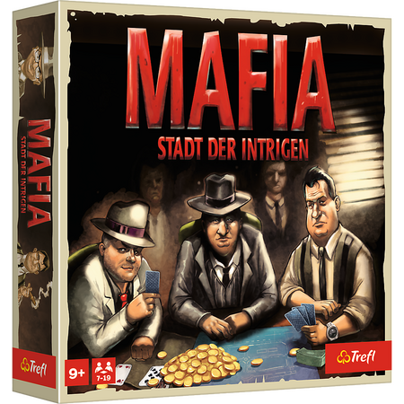 „Mafia — Stadt der Intrigen" ist ein Partyspiel für Gruppen zwischen 7 und 19 Spielende, voller Geheimidentitäten, Täuschungen und Manipulationen.