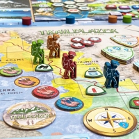 Rastet am Ediza Lake und lasst eure Füße ins kühle Wasser des Kings River baumeln. Oder legt euch in den Schatten eines Riesenmammutbaums, fangt eine Goldforelle (und lasst sie wieder frei), genießt das Zwitschern der Amseln und seht den Murmeltieren beim Herumtollen zu. Vielleicht findet ihr ja sogar die seltene Schneeblume. Viel Spaß beim Wandern!Wandert auf dem Trail, erlebt dabei spannende Dinge und versorgt euch mit Ressourcen und Proviant. So könnt ihr die Natur und Highlights um euch herum entdecken, was euch entweder sofort Punkte bringt oder am Ende des Spiels, falls ihr passende Sets gesammelt habt. Nutzt die Ausrüstung in eurem Rucksack, um euch auf eurer Wanderung wertvolle Belohnungen und Abzeichen zu sichern. In Sierra Nevada habt ihr viele Möglichkeiten, Punkte zu erhalten: Ihr sammelt Ressourcen und Karten für sofortige Punkte, versucht so schnell wie möglich, die Etappen zu meistern, und baut euch eine kleine Engine auf und sammelt Sets, um euch Belohnungen und Punkte am Ende des Spiels zu sichern. Jede Partie ist anders und es führen euch verschiedene Wege zum Ziel!