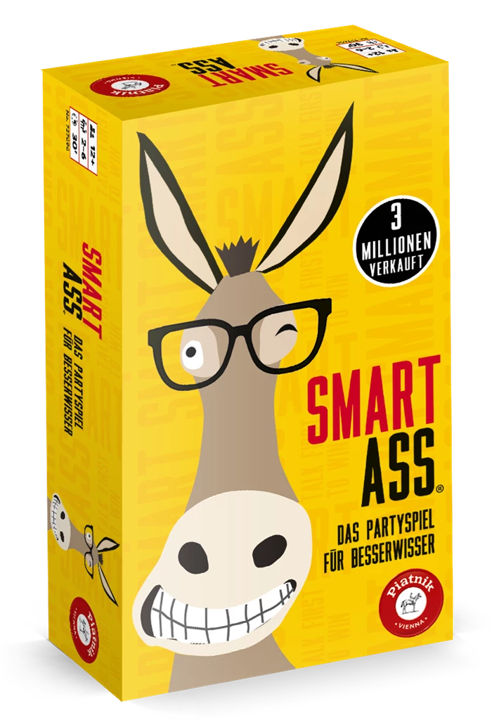 Diese Fragen stehen im Mittelpunkt von Smart Ass, dem unterhaltsamen Wissensspiel, bei dem es auf schnelle Reaktionen ankommt. Die Spieler hören aufmerksam den vorgelesenen Hinweisen zu und kombinieren diese blitzschnell. Wer als Erster die richtige Antwort weiß, ruft sie laut in die Runde und sammelt Punkte. Am Ende gewinnt, wer die meisten Fragen korrekt beantwortet hat und sich so als wahrer Besserwisser erweist.Merkmale:Schnelles Ratespiel für gesellige Runden. Fragen in den Kategorien „Was bin ich?“, „Wer bin ich?“ und „Wo bin ich?“. Reaktionsvermögen und Wissen sind gleichermaßen gefragt. Ideal für Partyabende und lockere Spielrunden