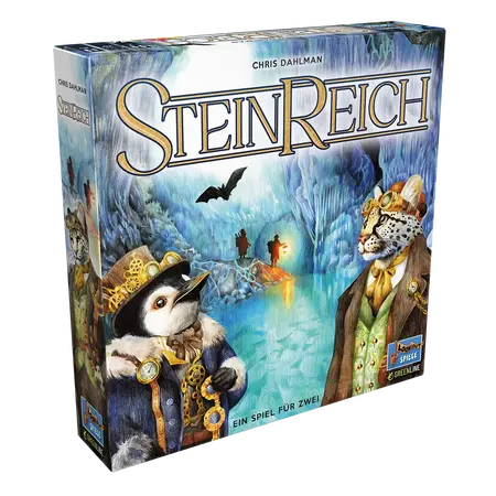 Edelsteine, Geoden, Celestiten - je tiefer ihr in die Höhle vordringt, desto wertvoller werden eure Funde. Am Ende gewinnt, wer die wertvollste Sammlung an Edelsteinen zusammengetragen hat!Legen wir los: Beide Schatzgräber starten mit der gleichen Anzahl an Werkzeug-Token. Ihr macht abwechseln eure Spielzüge, bis das Spiel beendet ist. Dazu könnt ihr euren Gefährten als Helfer einsetzen, in jedem Fall platziert ihr jedoch einen Werkzeug-Token auf einem freien Feld am Rande des Spielplans. Die Werkzeugmarker sorgen für die Freilegung der Schätze: Sobald ein (oder mehrere) Edelsteine in der Sichtachse von drei verschiedenen Werkzeugen liegen, darf der aktive Spieler diesen Schatz bergen. Übersieht er oder sie die Gelegenheit, geht das Stück an den Gegner. Wer möchte nicht steinreich sein?Dieser neue Titel aus der Reihe an knackigen Lookout-Spielen für Zwei punktet mit:* einfachen Regeln* einem raffinierten Mechanismus* ist rasch aufgebaut und schnell gespielt* ist Teil der umweltfreundlichen Lookout GreenLine* bis hin zum farbenprächtigen Spielplan aus Baumwolle!Das klingt nach der richtigen Herausforderung für euch?Ran ans Werkzeug und sammelt euch STEINREICH!Inhalt:1 Spielplan aus Baumwolle2 Gefährtenplättchen30 Werkzeugplättchen49 blaue Höhlenplättchen18 grüne Höhlenplättchen16 rote Höhlenplättchen3 Beutel1 Regelheft