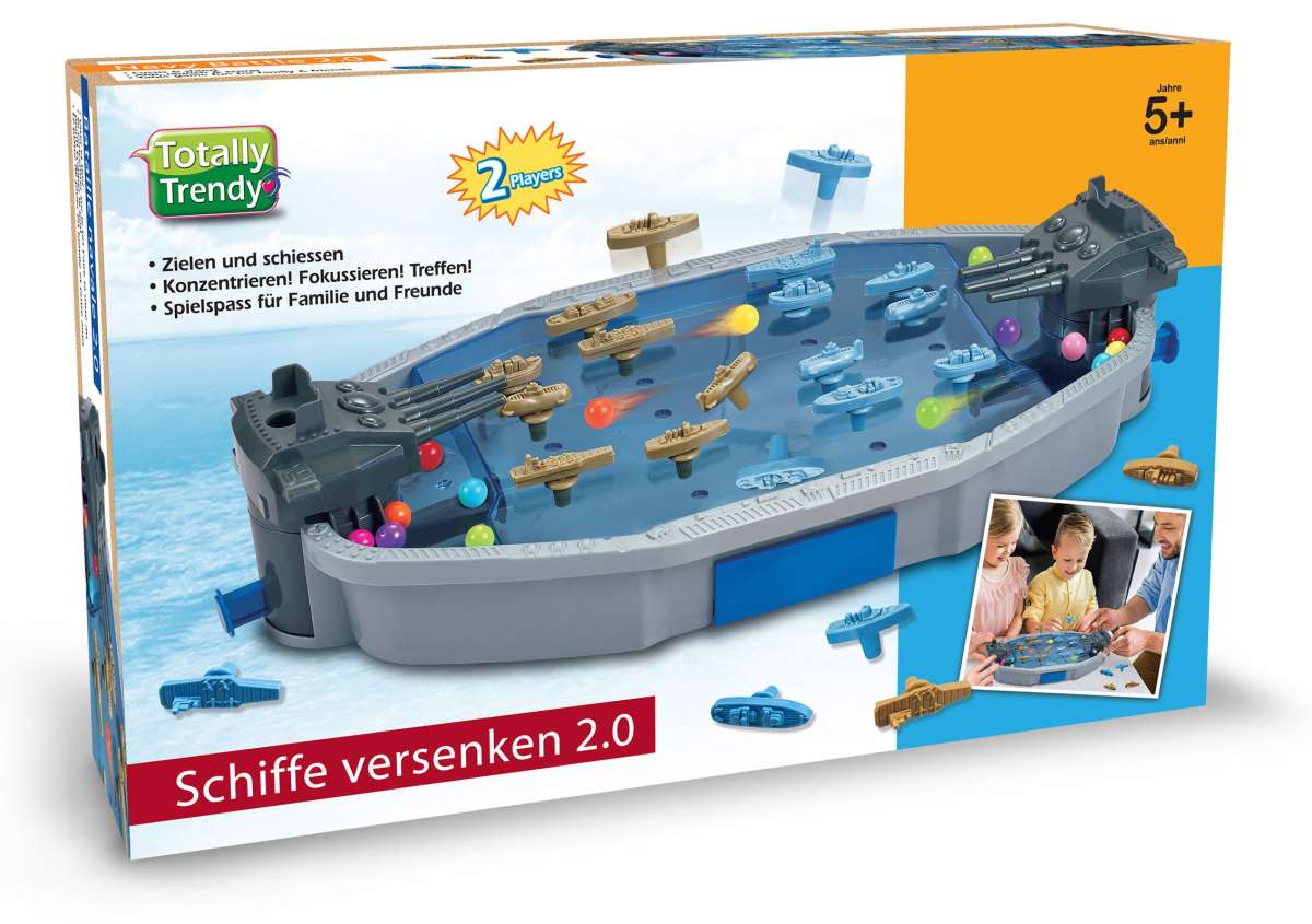 Wer schafft es zuerst dem Gegner seine 10 Schiffe mit den farbigen Murmeln von der Spielfläche zu schissen. Fülle die Kanone mit den farbigen Kugeln, Ziele und drucke den Abschussknopf. Wenn du das gegnerische Schiff triffst, wird es von der Spielfläche katapultiert. Inhalt: 1x Basis, 2x Kanone, 20x Schiffe. 30x Murmeln